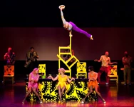 El equipo es tan sencillo como parece: ocho sillas y un pedestal. Pero en este número, el artista los utiliza para crear una torre de 7 metros sobre la que hacer un número de equilibrio que muestra todo el poder y control muscular del cuerpo humano.