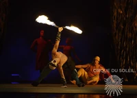 La furia del fuego y la pureza del agua, que aparecen a través del Teatro de "O", se unen a continuación en este acto visual. Incorporando el folklore antiguo y las artes marciales, este acto invoca a los rituales de tierras de todo el mundo, incluyendo Hawaii, Samoa, Nueva Zelanda y Australia. El acto del fuego fue creado y transformado por artistas con orígenes que van desde compañías de artes escénicas hasta actores callejeros. Incorporando en el acto, el impresionante truco de fuego de la Antorcha Humana, realizado por Ray Wold.